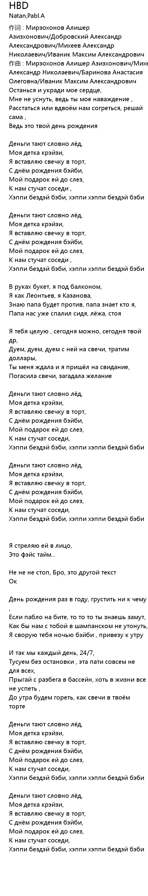 HBD 歌词