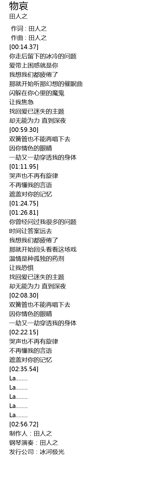 | [02:58.72] | 钢琴演奏:田人之 |
