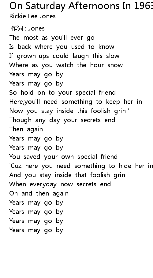 | 歌曲 | On Saturday Afternoons In 1963 |