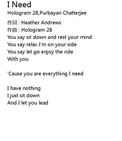 | 歌曲 | I Need |