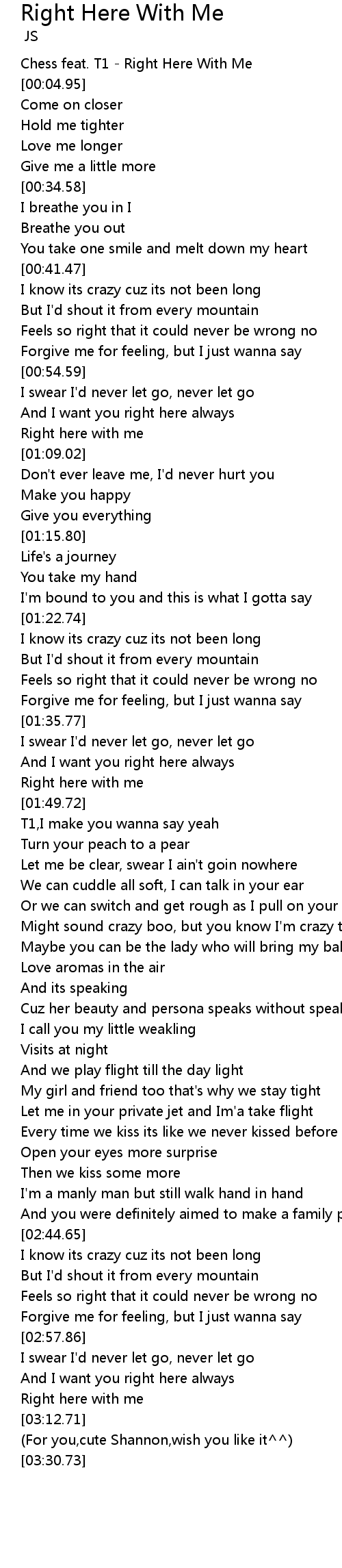 | [00:02.21] | Chess feat. T1 - Right Here With Me |