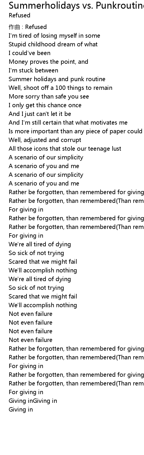 | 歌曲 | Summerholidays vs. Punkroutine |