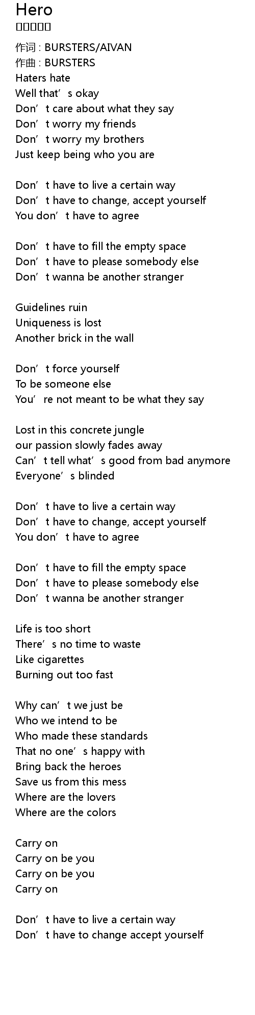 | Don' t have to change accept yourself |
