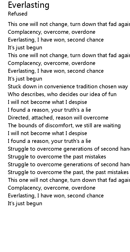 Everlasting, I have won, second chance