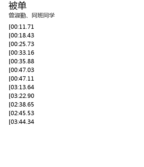 | [03:26.00][03:22.90][02:30.91] | er bei dan bu gu dan pei ni lan se de lv cheng |
