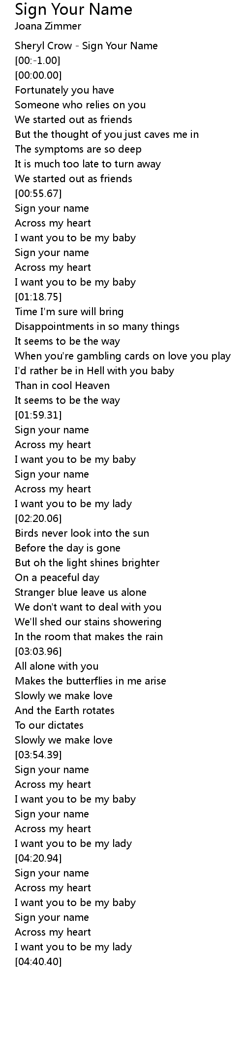 Sheryl Crow - Sign Your Name |