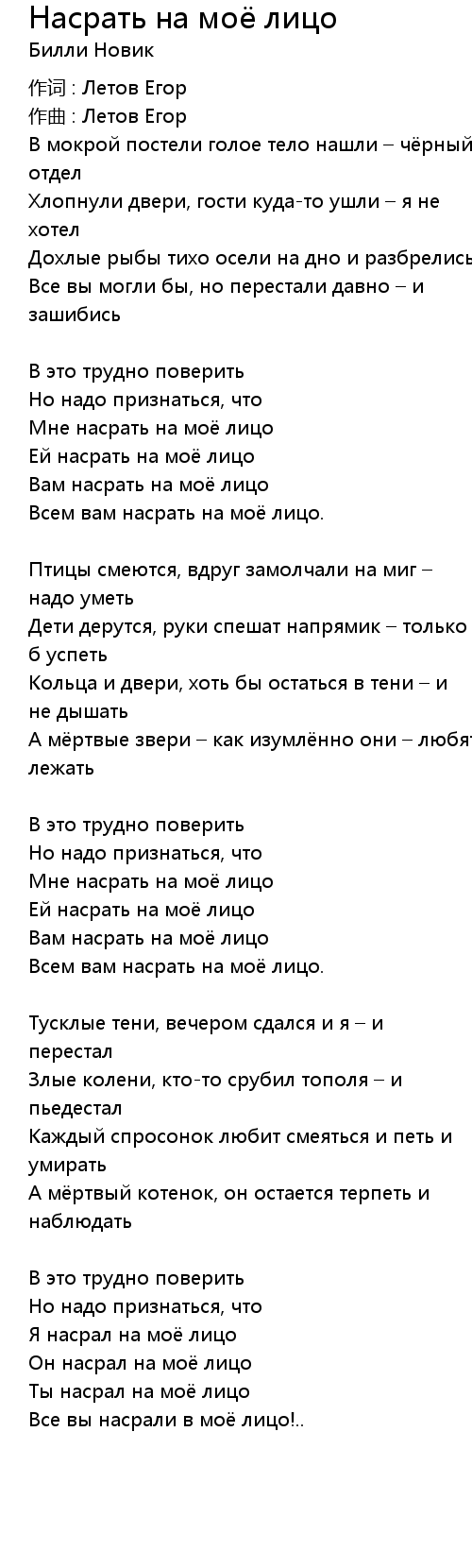 Насрать на моё лицо 歌词