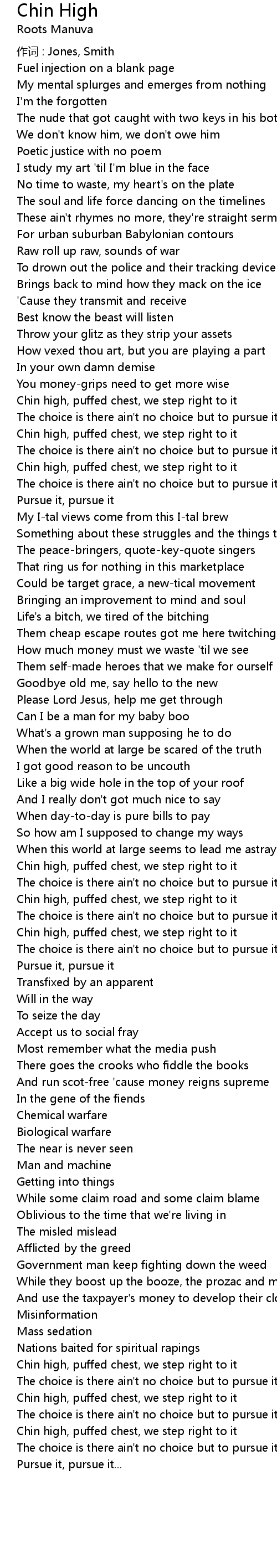 | The choice is there ain't no choice but to pursue it | |