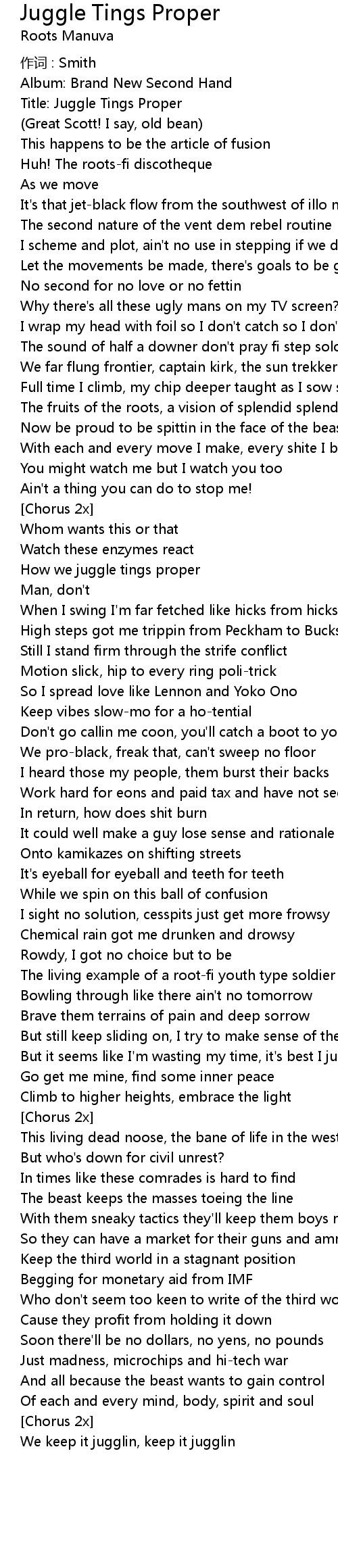 | 歌曲 | Juggle Tings Proper |