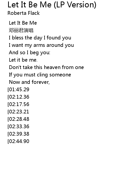 | [00:00.00] | Let It Be Me |