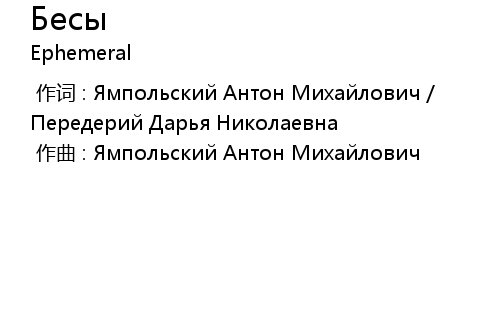 | [00:00.000] | 作词 : Ямпольский Антон Михайлович / Передерий Дарья Николаевна |