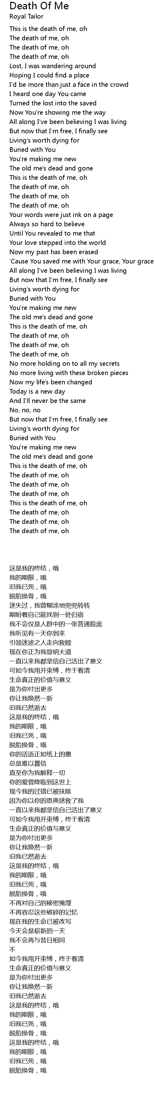 The death of me, oh |