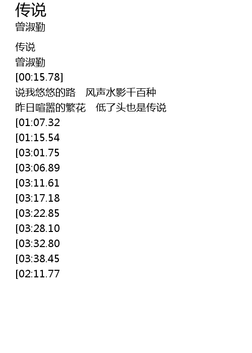 | [03:49.68][03:06.89][01:30.99] | 一生故事独自守 |