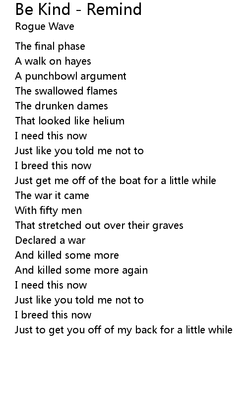| 歌曲 | Be Kind - Remind |