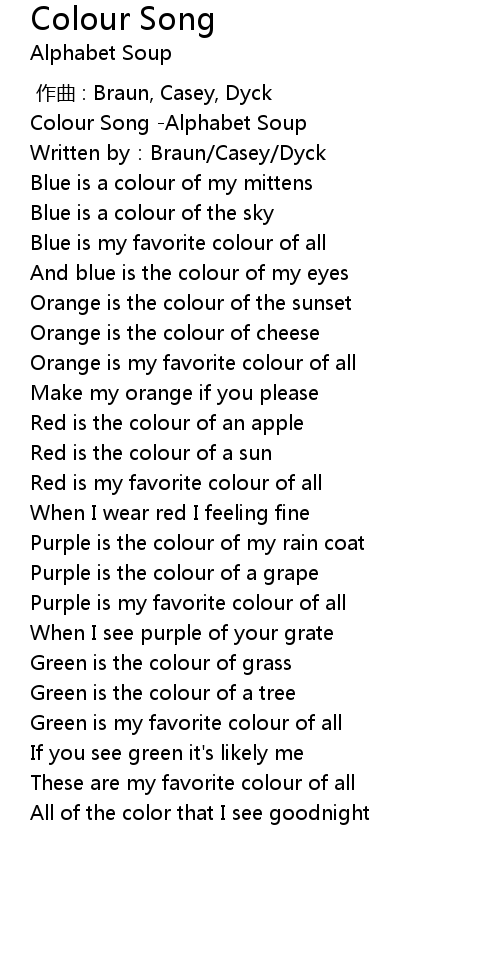| [00:00.402] | Colour Song -Alphabet Soup |