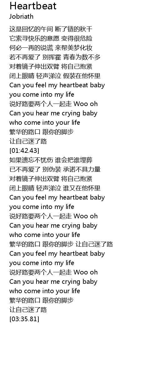 | [02:59.67] | Can you feel my heartbeat baby |