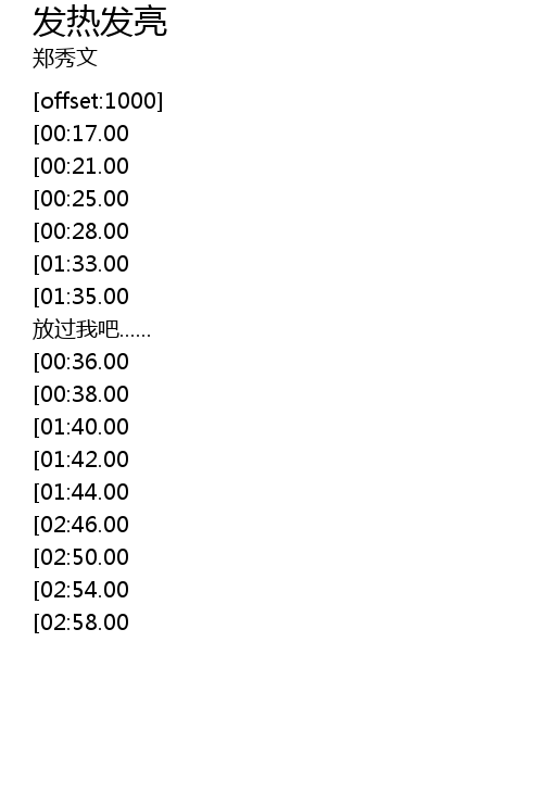 | [03:02.00][02:46.00][01:46.00][00:46.00] | wo zai fa re fa liang |