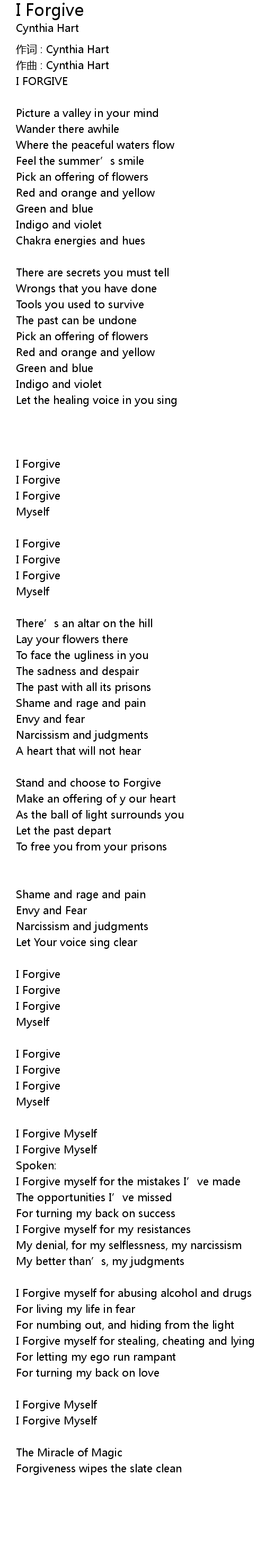 | 歌曲 | I Forgive |