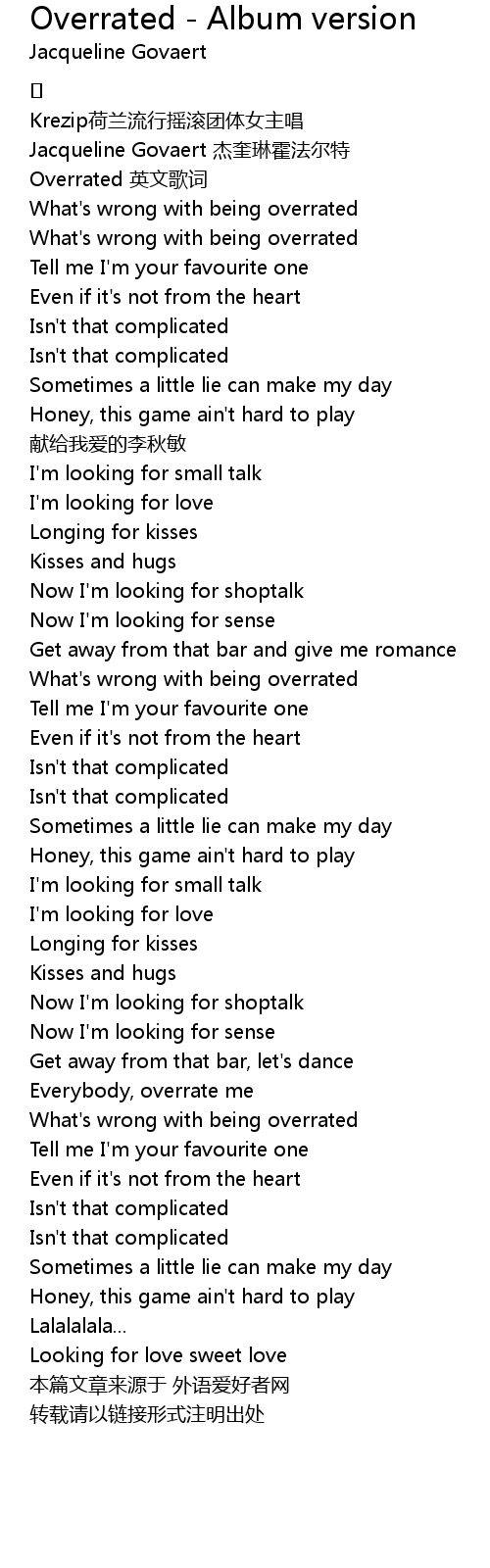 | [00:14.667] | Overrated 英文歌词 |