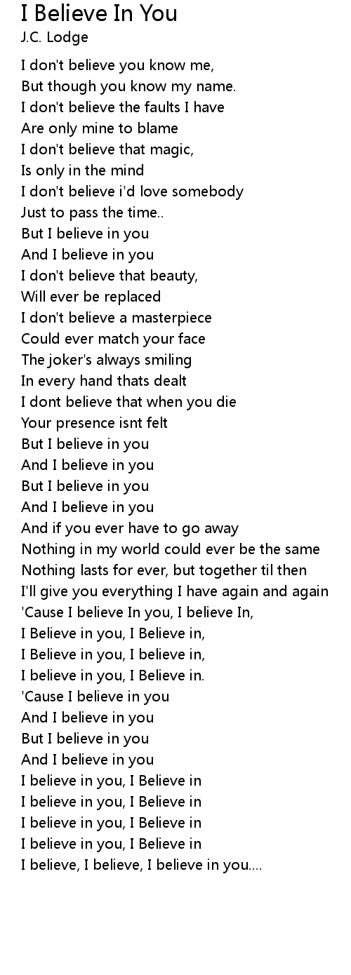 I believe in you, I Believe in |