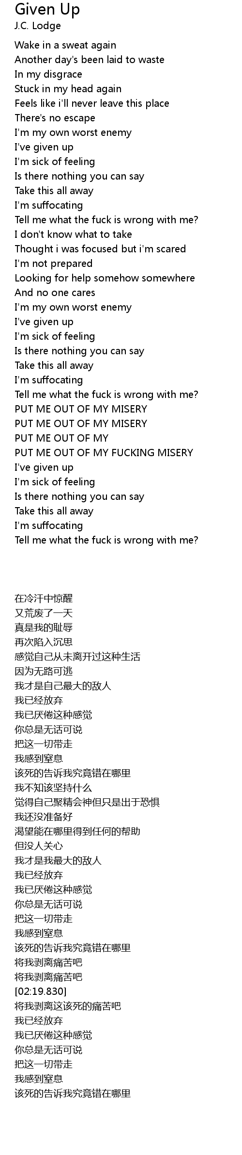PUT ME OUT OF MY FUCKING MISERY |