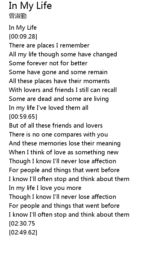 In My Life 歌词