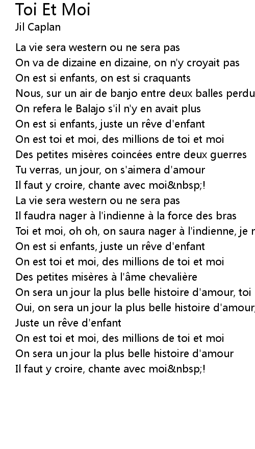 | Toi et moi, oh oh, on saura nager a l' indienne, je ne m' en fais pas | |