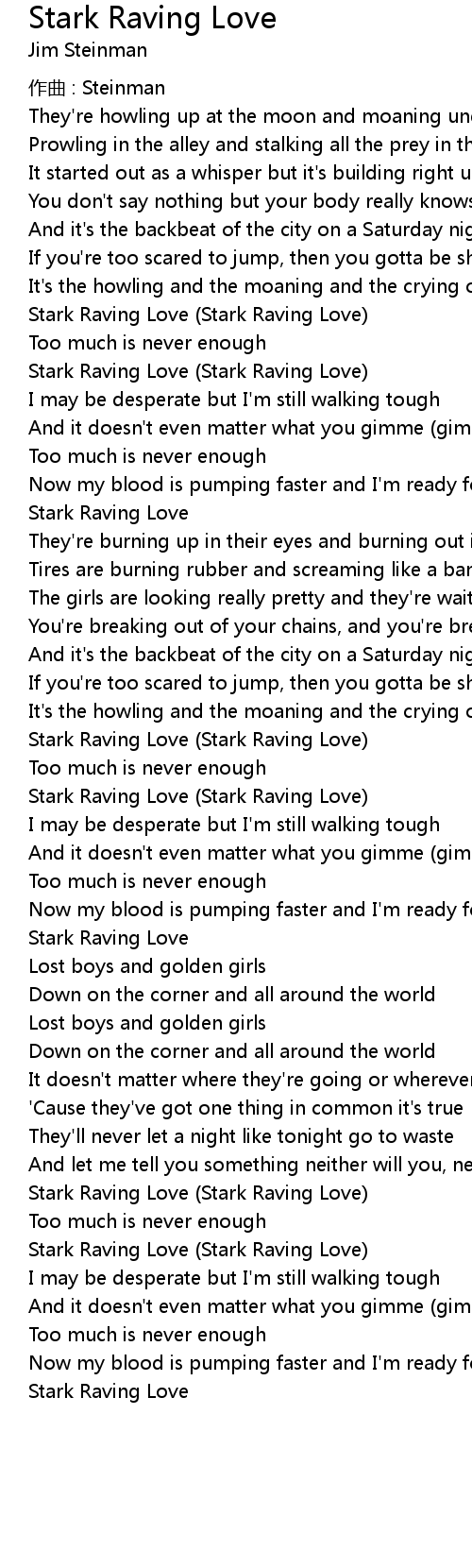 | 歌曲 | Stark Raving Love |