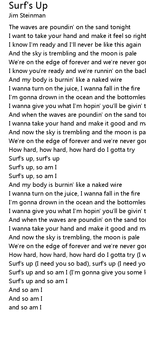 Surf's up (I need you so bad), surf's up (I need you so bad) |