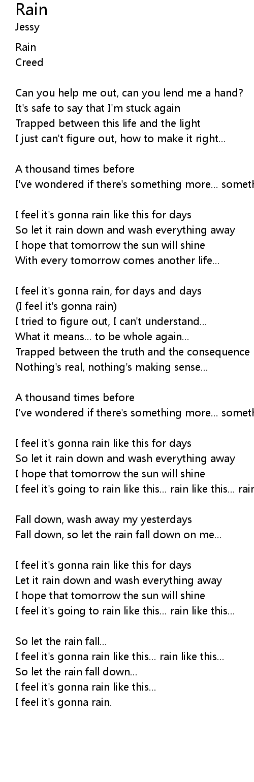 | I feel it's going to rain like this... rain like this... rain like this... | |