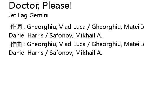 | [00:00.000] | 作词 : Gheorghiu, Vlad Luca / Gheorghiu, Matei Ioan / Diliberto, Daniel Harris / Safonov, Mikhail A. |