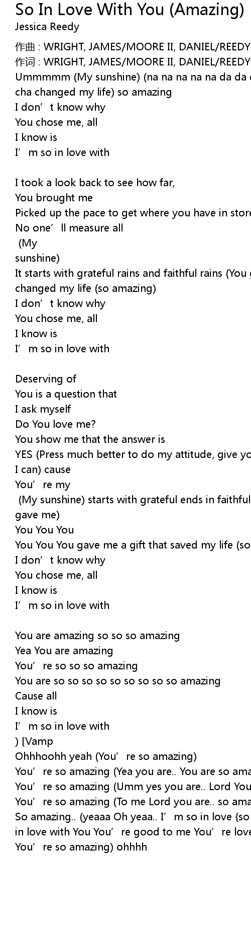 | So amazing.. yeaaa Oh yeaa.. I' m so in love so in love in love So in love, in love with You You' re good to me You' re lovely to me Yea yea yeaaaaa You' re so amazing ohhhh |