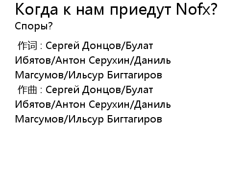 | 歌曲 | Когда к нам приедут Nofx? |
