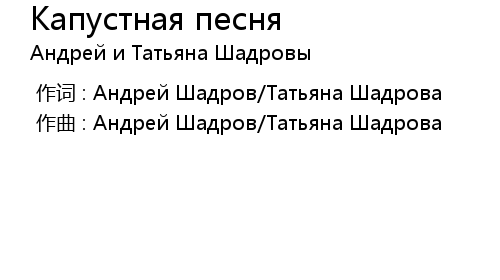 | [00:00.000] | 作曲 : Андрей Шадров/Татьяна Шадрова |