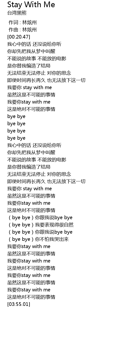 | [03:34.37] | 我要你stay with me |