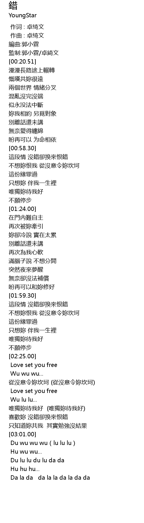 | [00:18.43] | 監制:郭小霖/卓綺文 |