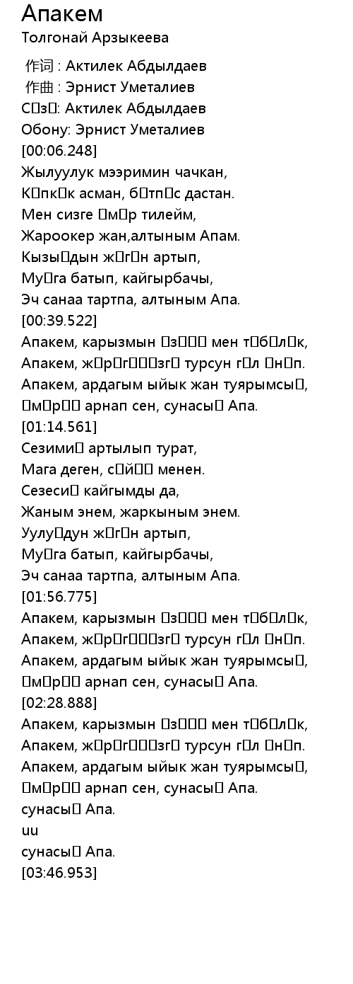 作词 : Актилек Абдылдаев |