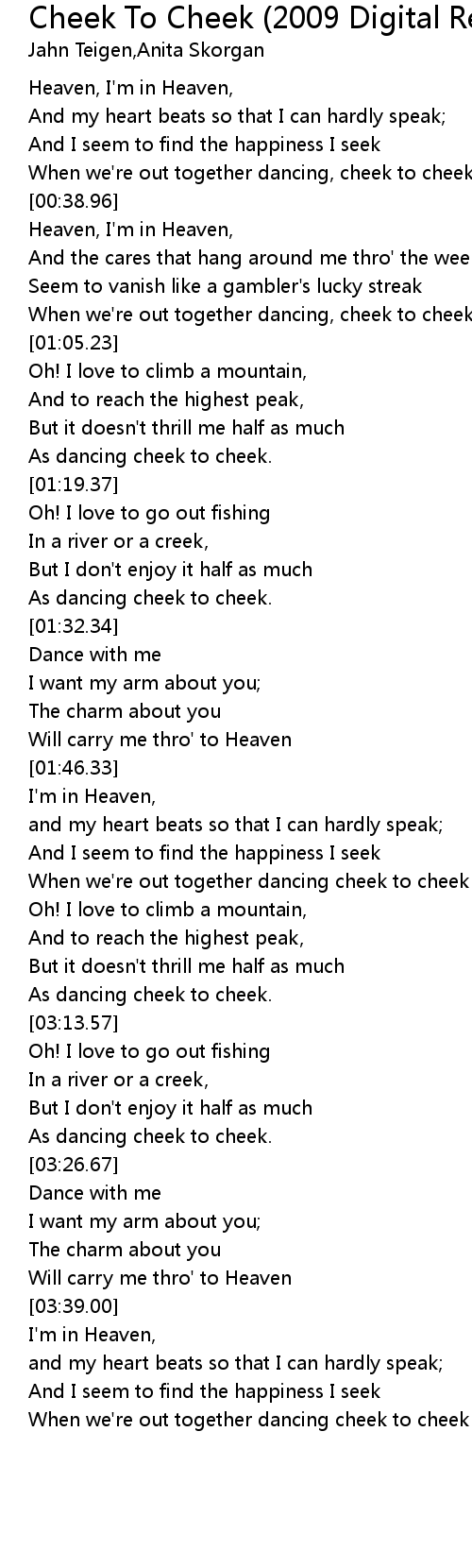 When we're out together dancing, cheek to cheek. |