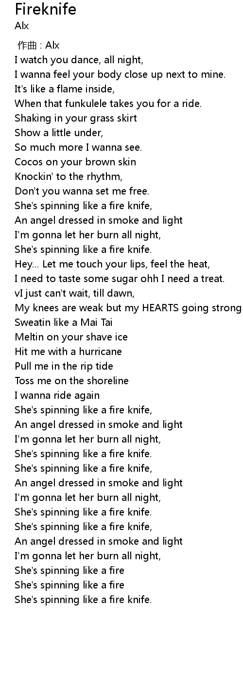 | [01:12.44] | She's spinning like a fire knife. |