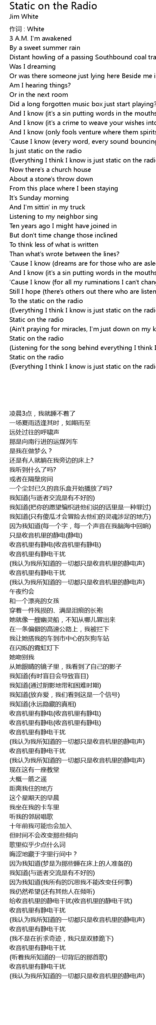 | [03:33.381] | (我认为我所知道的一切都只是收音机里的静电声) |