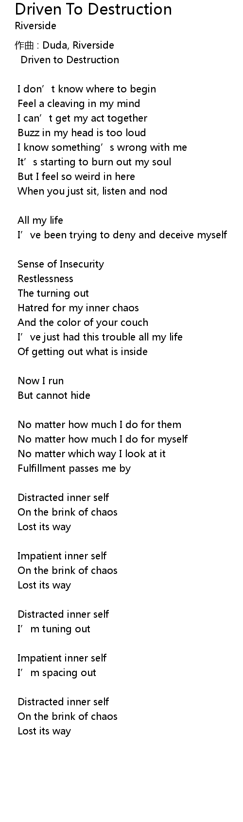 | 歌曲 | Driven To Destruction |