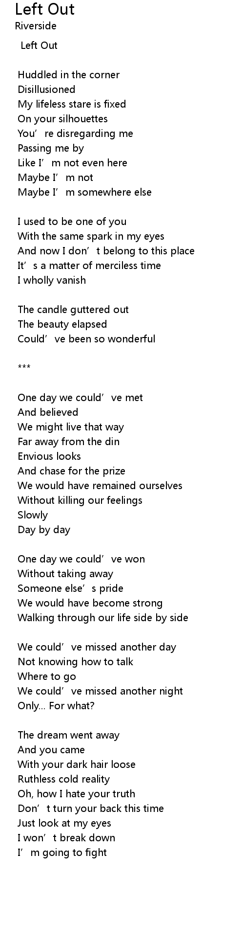 | 歌曲 | Left Out |