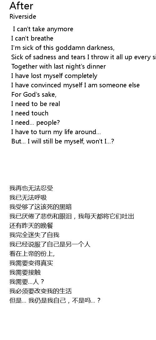 | [00:07.490] | 我已厌倦了悲伤和眼泪,我每天都将它们吐出 |