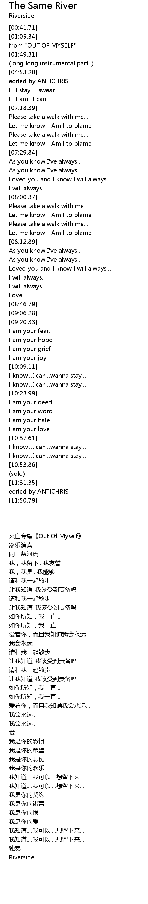 | [01:18.45] | 来自专辑《Out Of Myself》 |