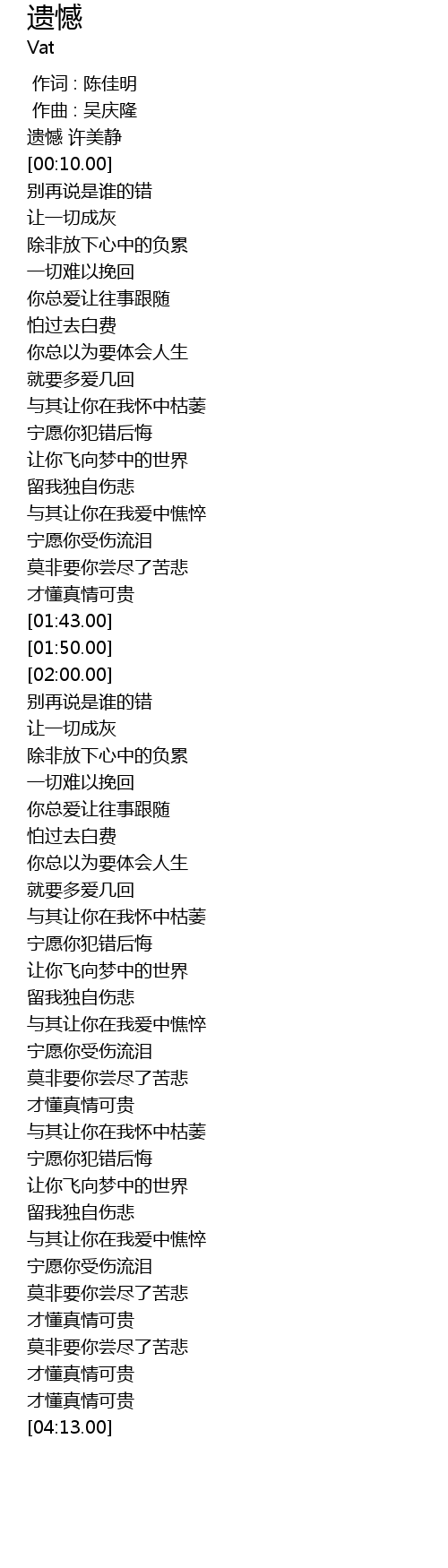| [03:31.00] | ning yuan ni fan cuo hou hui |