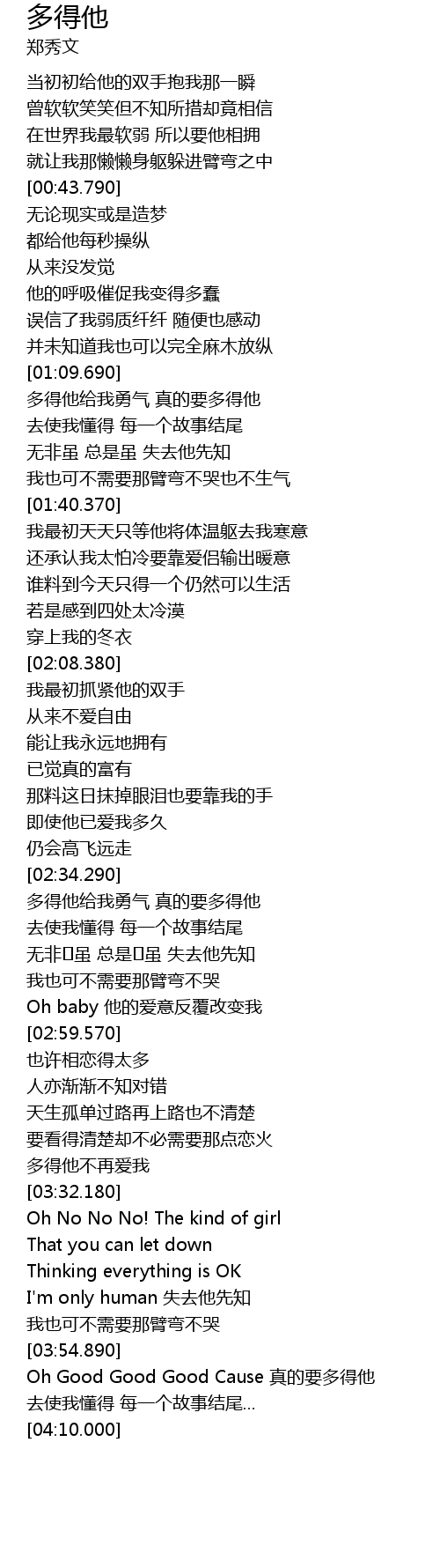 | [03:55.240] | Oh Good Good Good Cause 真的要多得他 |