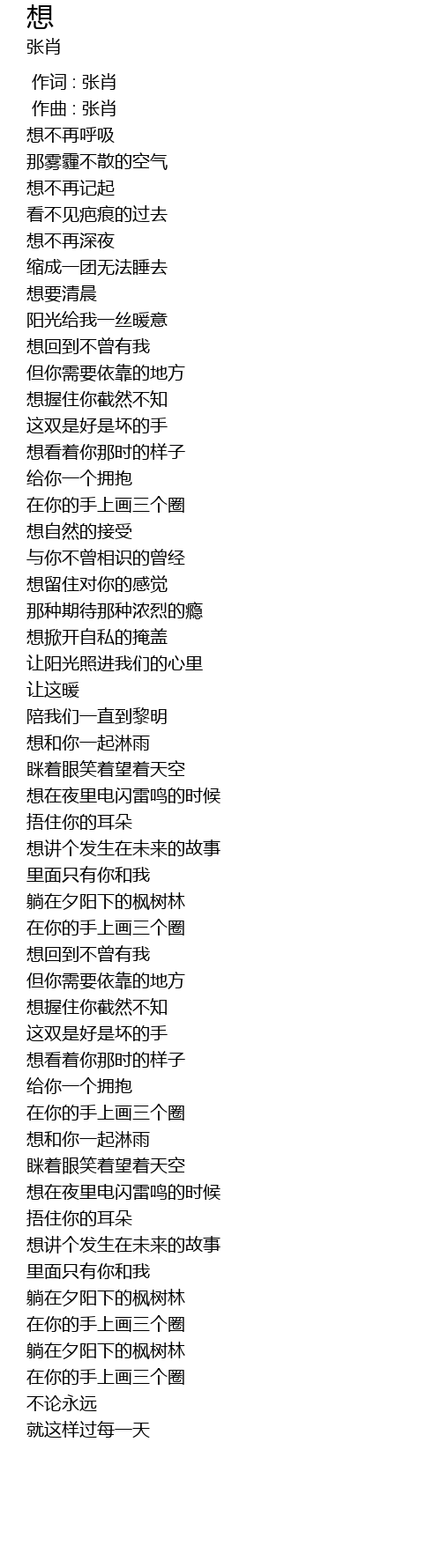 | [00:00.000] | 作词 : 张肖 |