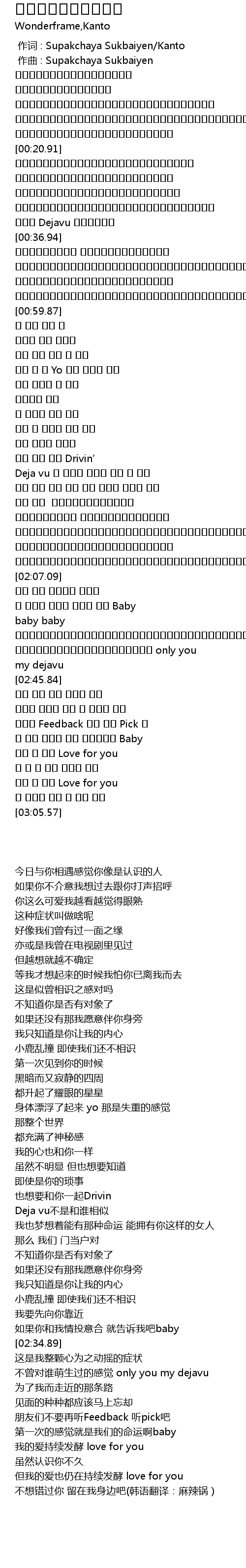 | [02:41.25] | ไม่เคยเกิดขึ้นกับใคร only you my dejavu |