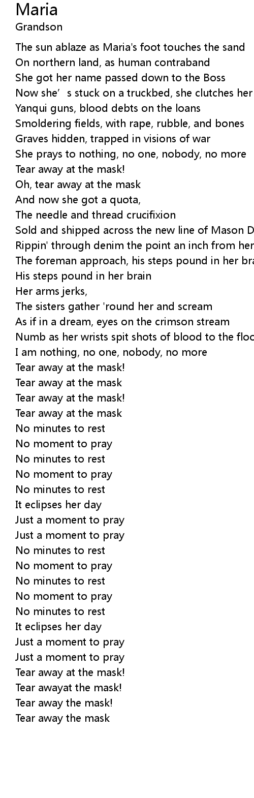 | [02:03.59] | Tear away at the mask! |