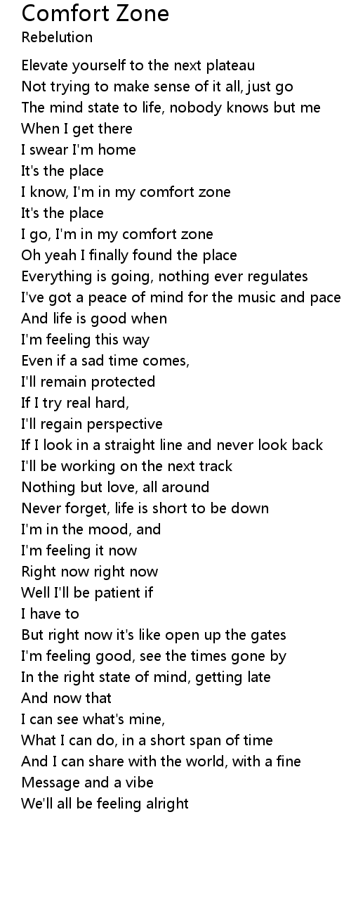 I know, I'm in my comfort zone |